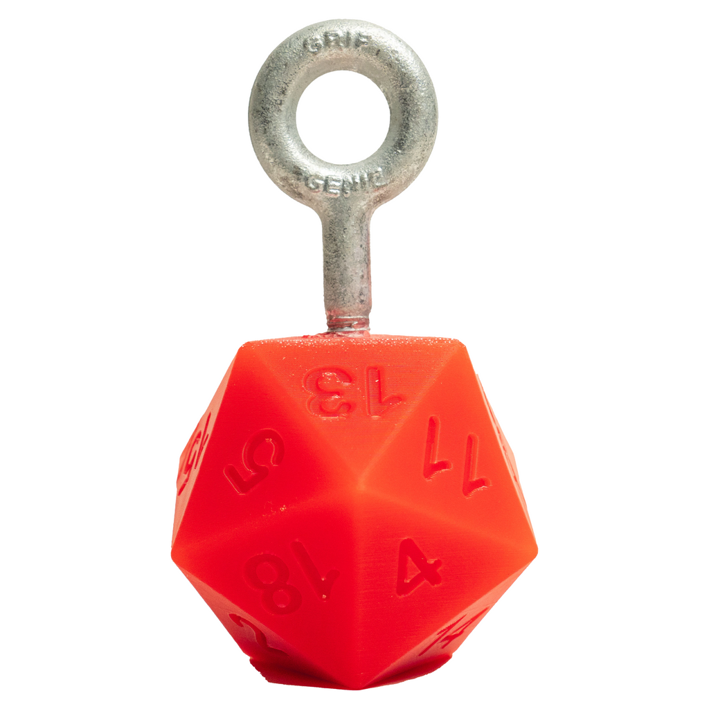 Our Critical Grip Resin D20 produces a clever and functional hybrid grip that can be used like our Genie Hub for finger strength or like our Genie Ball if you want to go heavier and grow forearms. This tool is also an excellent cable attachment for a unilateral variation of face pulls, pulldowns, or triceps pushdowns.